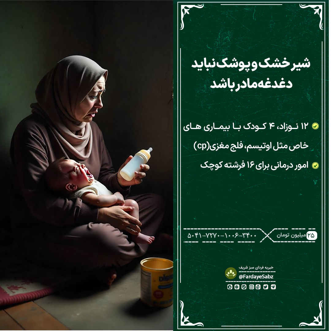 تأمین نیازهای نوزادان (پوشک، شیرخشک و درمان) و کودکان با بیماری های خاص، به صورت ویژه آغاز شده است.