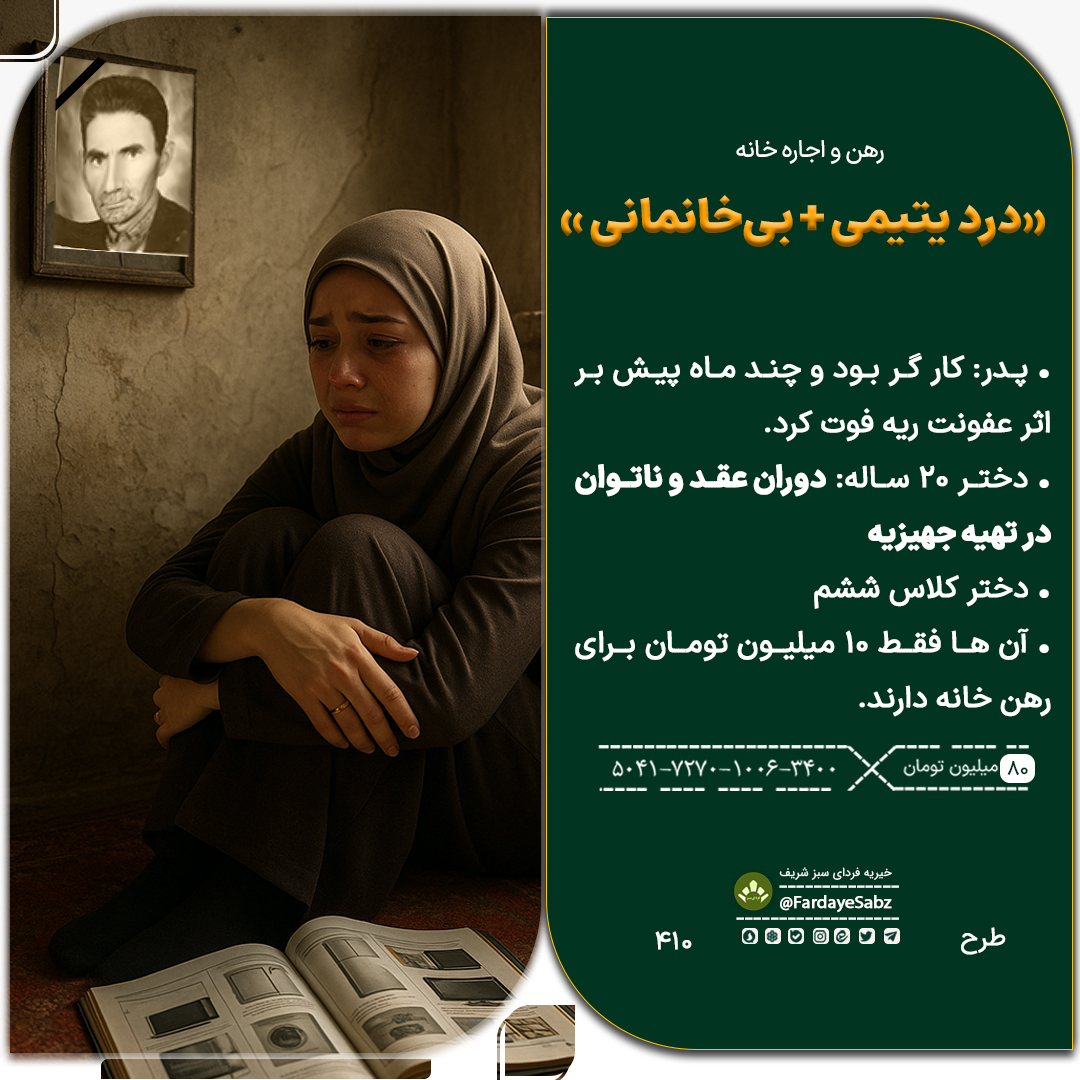 هیچوقت آن روز را فراموش نمیکنم...۲۵ شهریور امسال بود که همسرم به علت عفونت ریه از دنیا رفت. کارگر بود و درآمد چندانی نداشت و حالا باید خانه را تخلیه کنیم و فقط ۱۰ میلیون تومان برای رهن داریم...