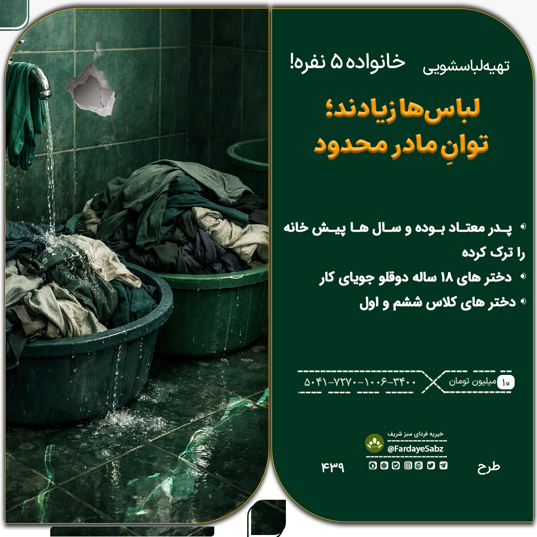 در این مرحله، با اهدای یک ماشین لباسشویی، میتوانیم بخشی از سختیهای روزمره این مادر فداکار را کاهش دهیم.