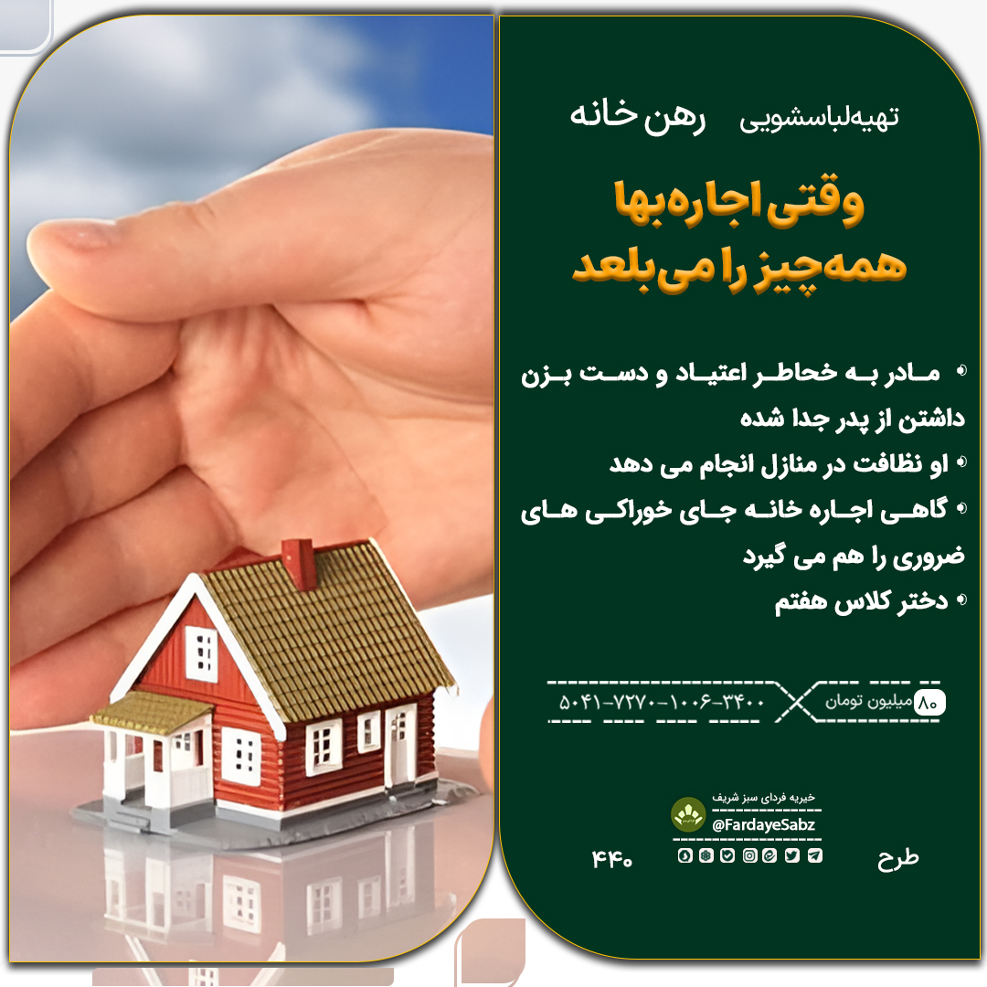 با پرداخت رهن خانه احساس امنیت را به این خانواده هدیه دهیم