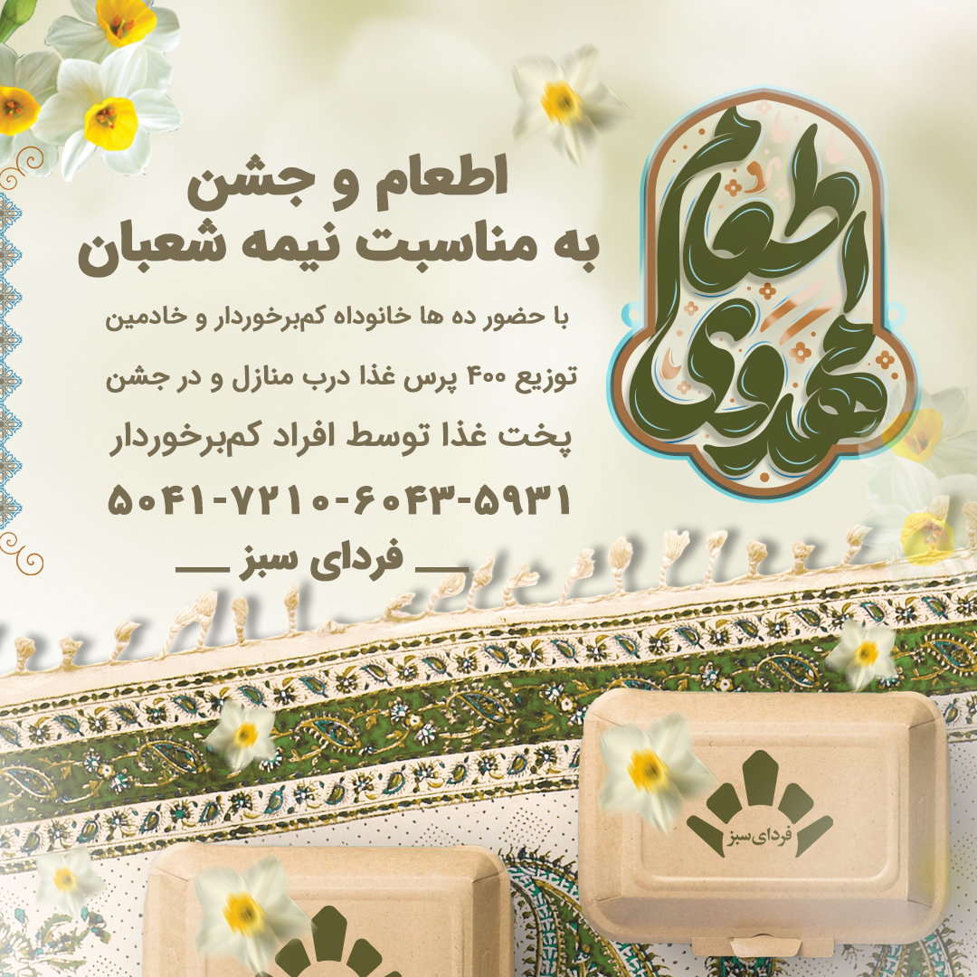 به مناسبت میلاد حضرت مهدی(عج)، جشنی با حضور خانوادههای کمبضاعت و خادمین برگزار میشود. به این مناسبت ۴۰۰ پرس غذا تهیه و در جشن و درب منازل خانواده های کمبضاعت توزیع خواهد شد.