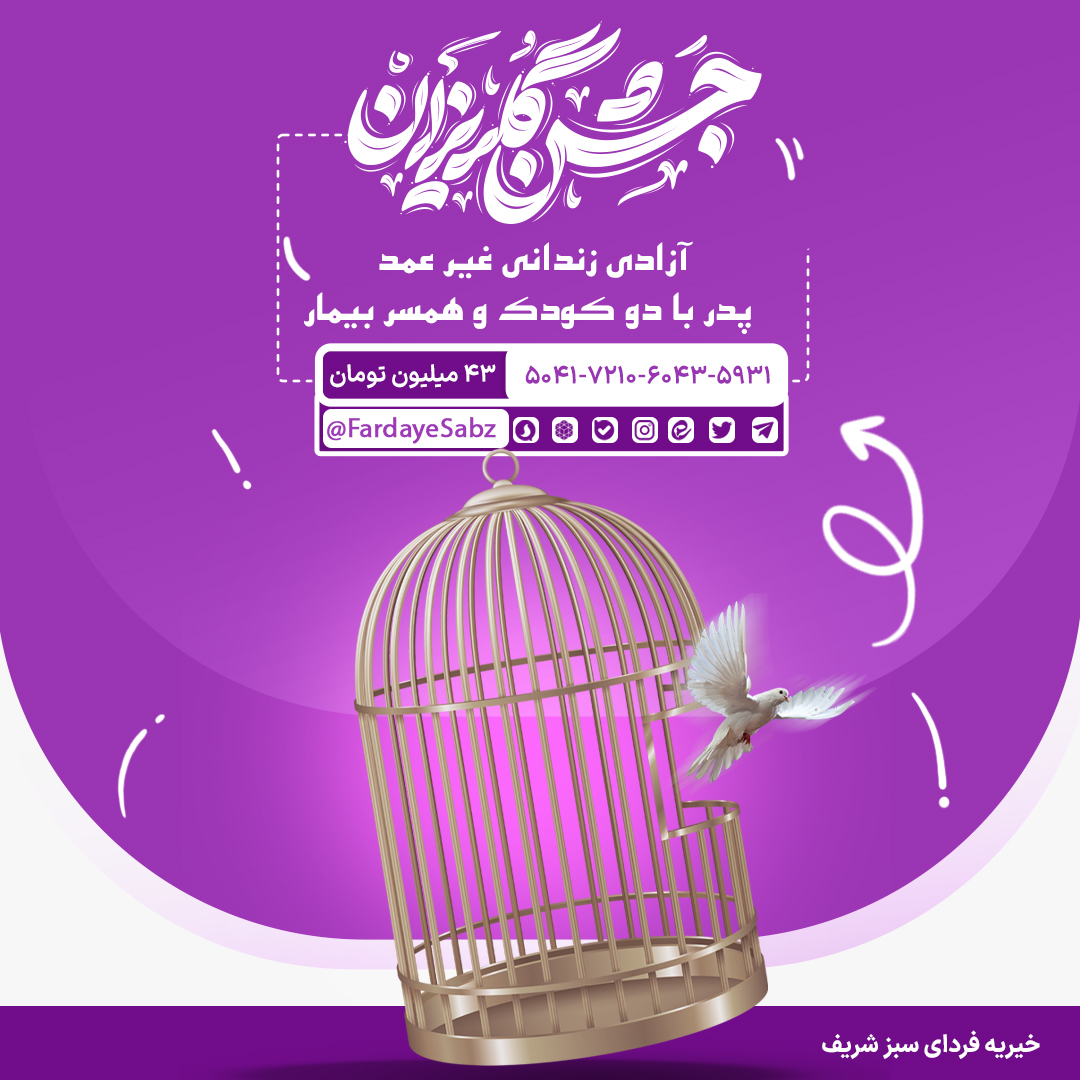 شوهرم به خاطر بدهی در کسب و کار در زندان به سر می برد. او حدود 400 میلیون تومان بدهکار است که طلبکار راضی شده است با دریافت 200 میلیون تومان رضایت بدهد که 80 میلیون آن را فردای سبز با کمک شما خیرین پرداخت می کند و بقیه آن را خیرین دیگر.