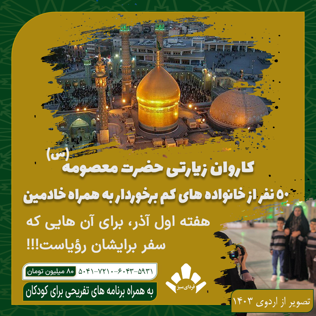 در هفتهی اول آذرماه و همزمان با ایام فاطمیه دوم، خانوادههایی که حتی یک سفر ساده برایشان آرزوست، به پابوس کریمه اهلبیت (س) مشرف میشوند و توفیق زیارت مسجد مقدس جمکران را نیز مییابند.