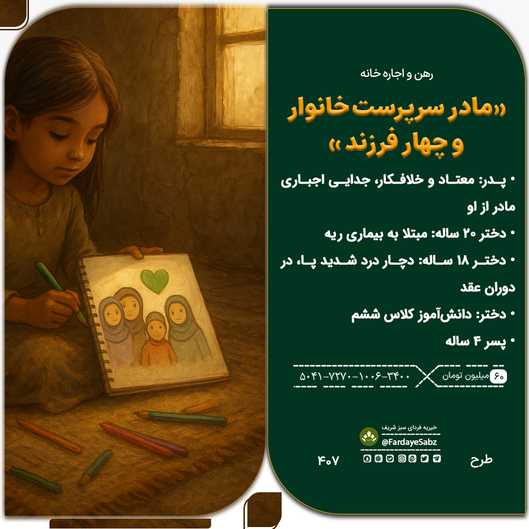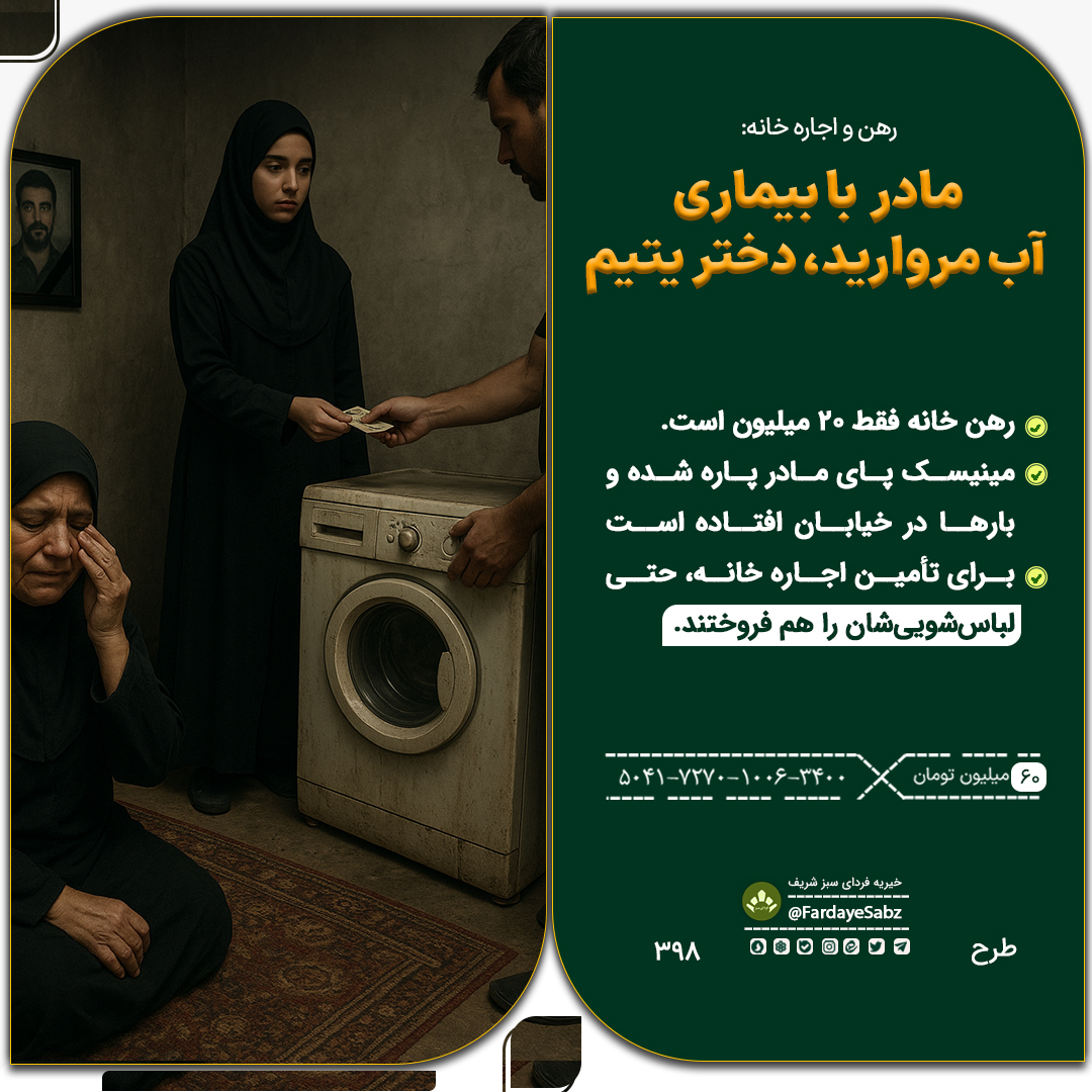 آنها دیگر چیزی برای فروش ندارند تا اجاره خانه بدهند. بیایید خانهای مناسب برای مادر و دخترشان فراهم کنیم.