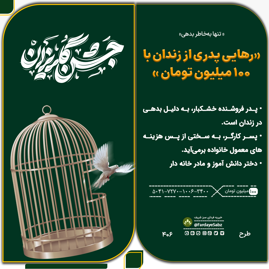 با اینکه میگرن شدید دارم، تا مدتها با فروش گردو و خشکبار زندگیام میگذشت. اما یکبار بار خشکباری که خریده بودم بهخاطر بدقولی خریداران خراب شد. من ماندم و ۲۰۰ میلیون تومان بدهی… و حالا زندان...ستاد دیه ۱۰۰ میلیون تومان از این بدهی را تقبل کرده و ۱۰۰ میلیون تومان باقیمانده باید توسط خیرین پرداخت شود.