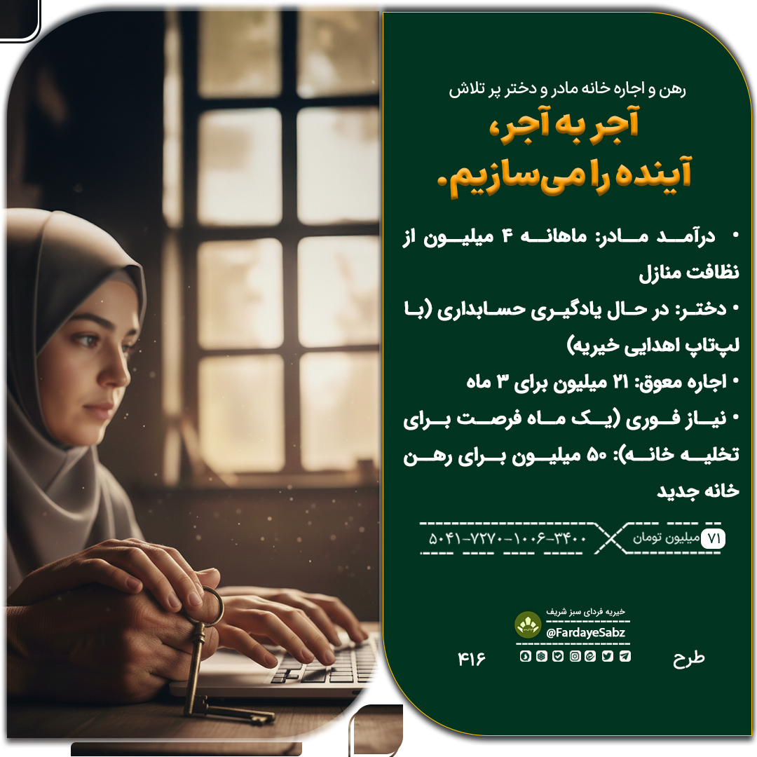 "کل مبلغ رهنی که داریم فقط ۱۵ میلیون تومان است و دیگر توان اجاره خانه جدیدی را نداریم. از وقتی صاحبخانه مستأجر جدید آورده، آرامش از ما گرفته شده است. یادم نمیرود دخترم زنگ زد و ماجرا را گفت، از شدت استرس قلبش درد میکرد. هر دو دختر دانشآموزم گریه میکنند و از بیخانمانی میترسند. برای اجاره یک خانه ارزان نیازمند کمک فوری هستیم."