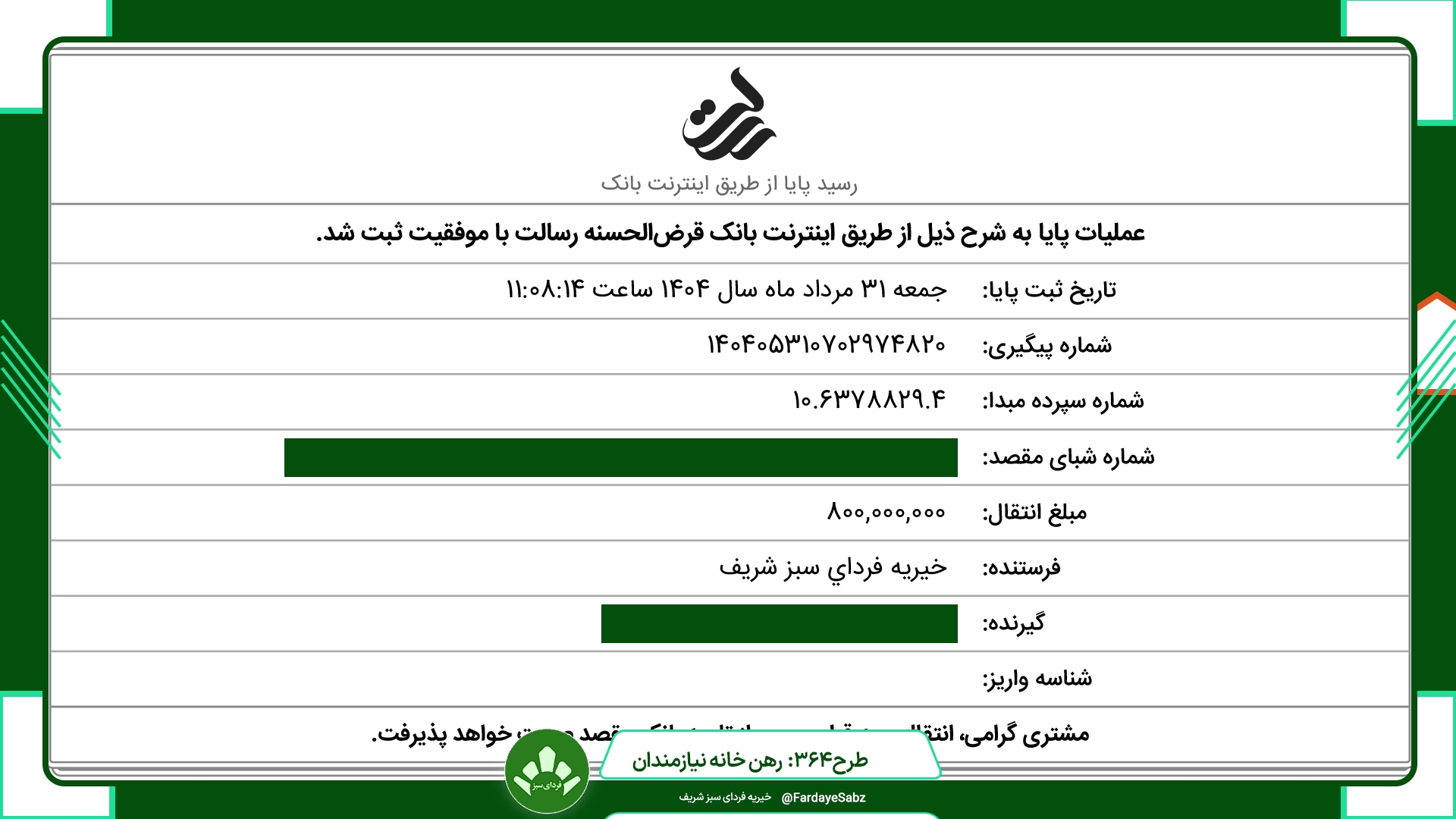 فیش بانکی این پرداخت را در ادامه میتوانید مشاهده کنید.