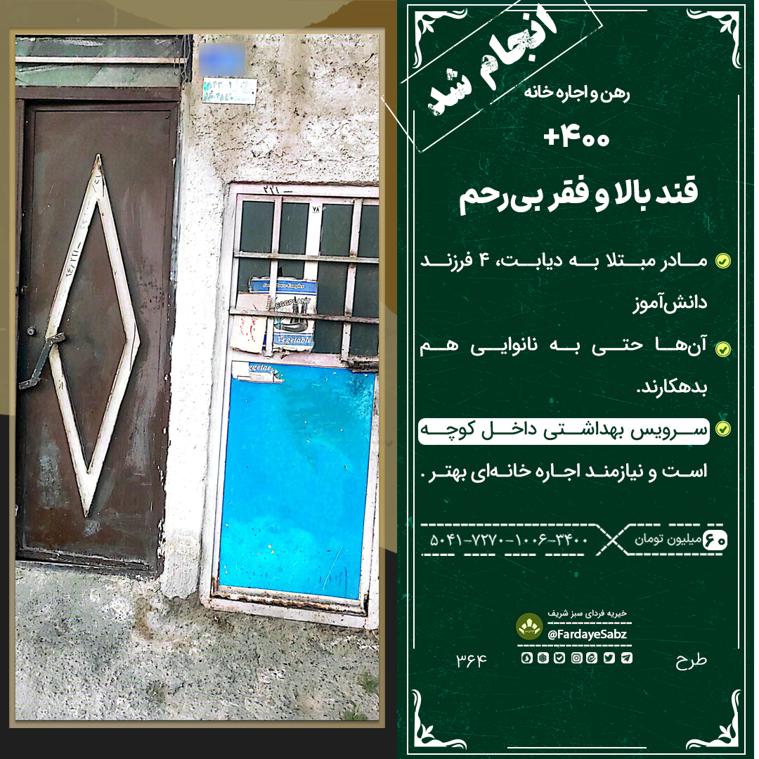 با قندی که حتی با دارو بالای ۴۰۰ میرسد، اما بهخاطر فرزندانش از بستری شدن چشم پوشیده.